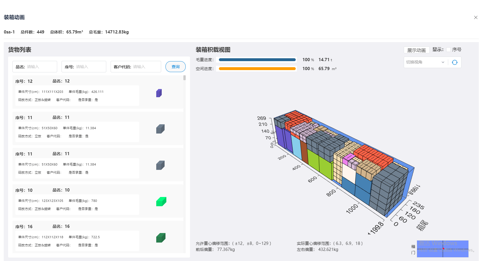 悠闲装箱是一款功能丰富使用体验好的在线智能算柜软件(搜索"悠闲装箱"注册免费试用30天)。多种装箱算法,包括贪心算法、模拟退火算法、遗传算法等,以及可视化的3D展示功能。用户可以根据货物的尺寸、重量、数量等信息,自动生成最佳的装箱方案。支持多式联运,适用于不同运输方式,从海运到货车运输无缝衔接。提供重心计算、多规格混装、自定义数据等功能,能够满足不同用户的装箱需求。